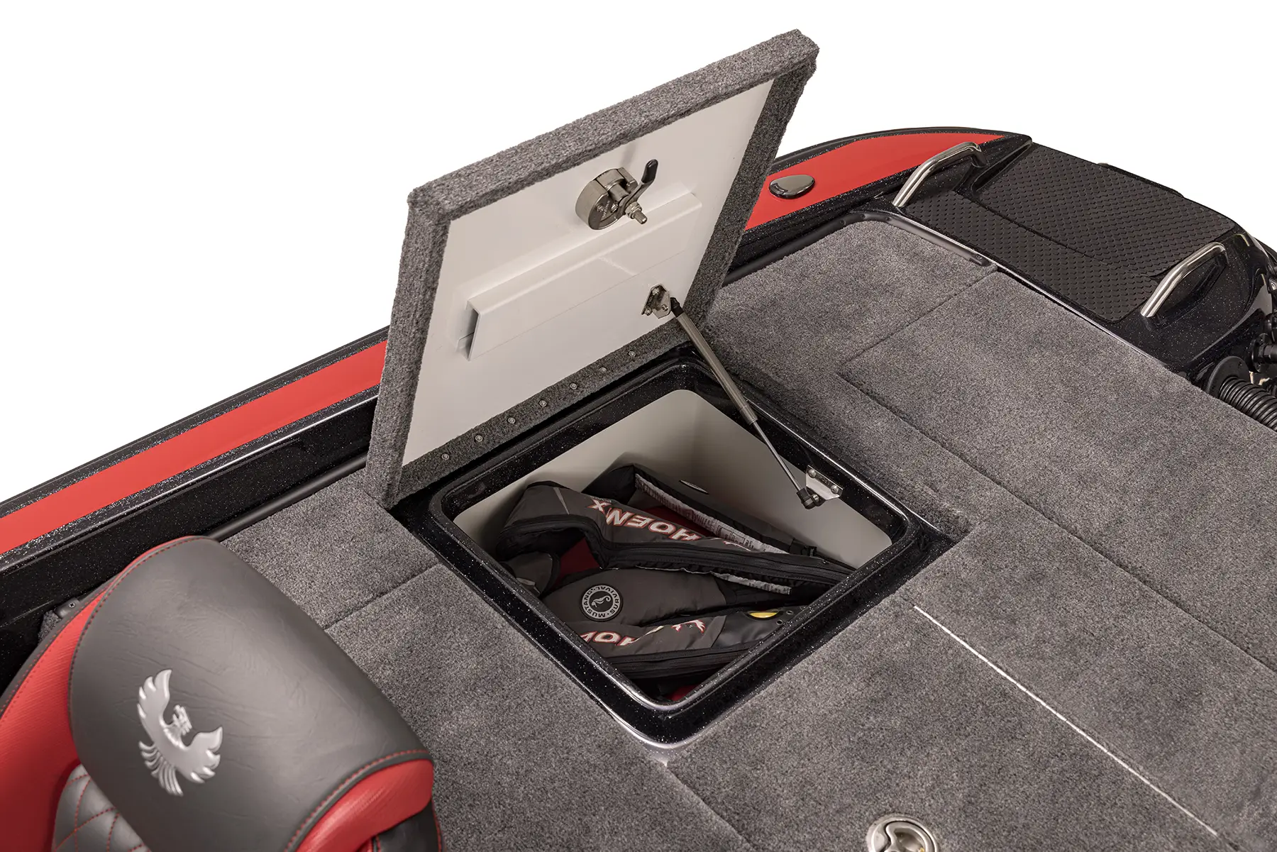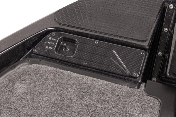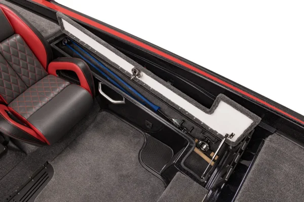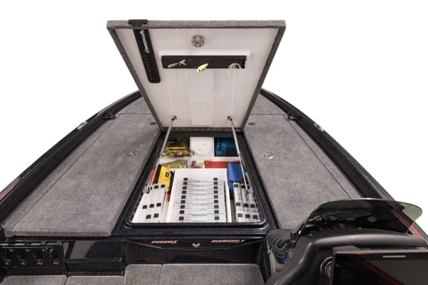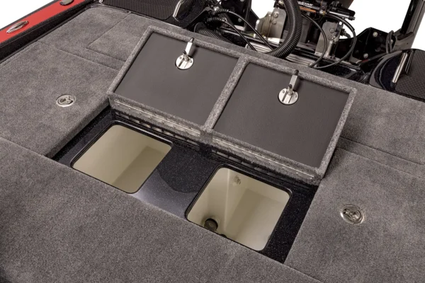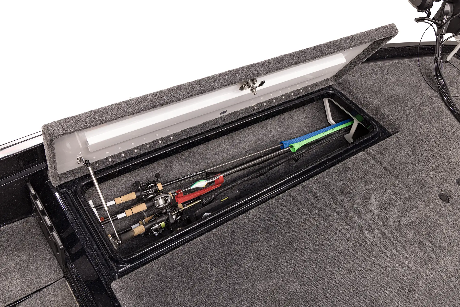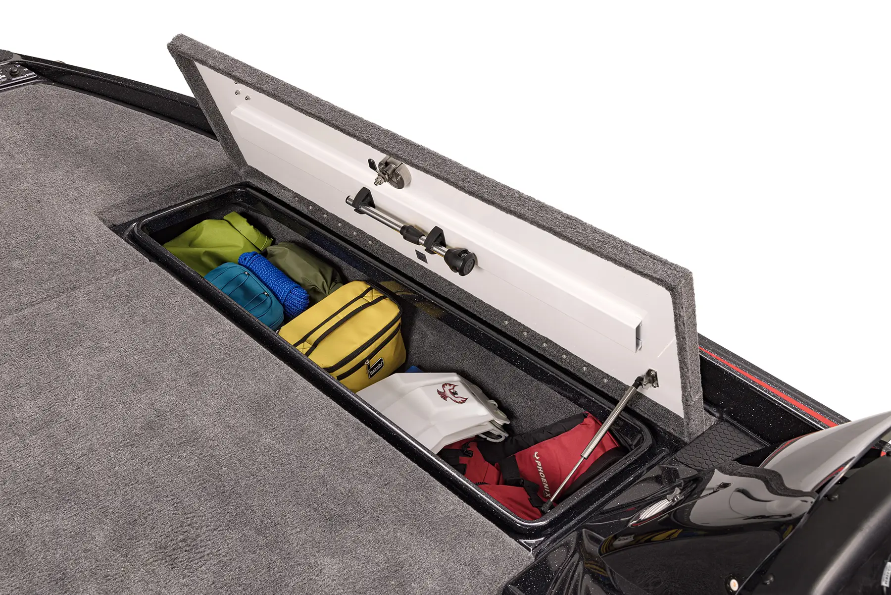 The 721 ZXL boasts a front deck that is 4” wider than the 721 Pro XP! The wider front deck allows the bow area to comfortably house up to 3 large screen electronics of your choice. Additionally, the 721 ZXL features an innovative 3-lid front deck layout which is comprised of two full-sized rod lockers and one completely re-designed, massive center storage box which can be accessorized with a sliding tackle system.