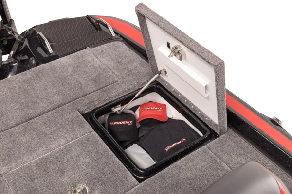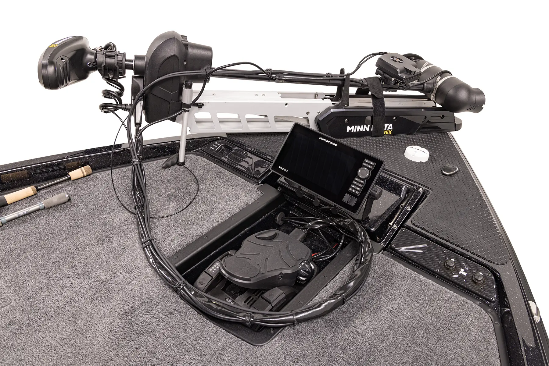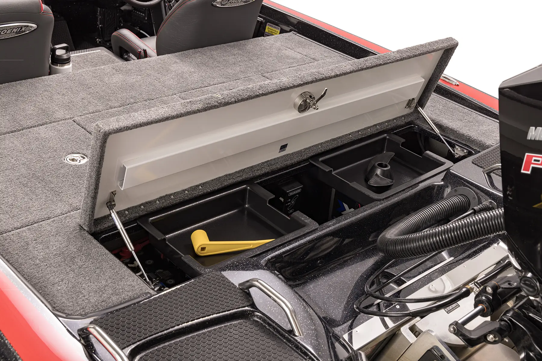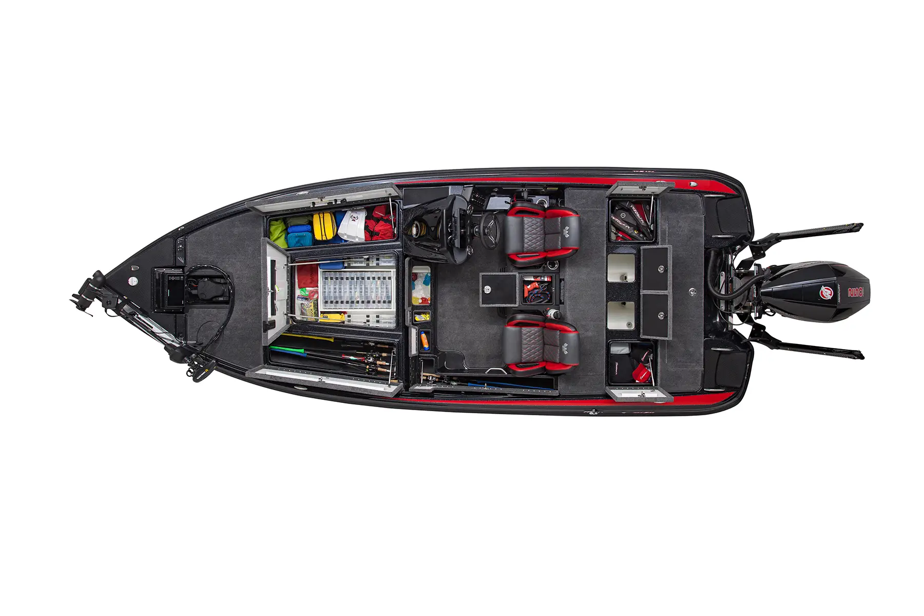 The 721 ZXL boasts a front deck that is 4” wider than the 721 Pro XP! The wider front deck allows the bow area to comfortably house up to 3 large screen electronics of your choice. Additionally, the 721 ZXL features an innovative 3-lid front deck layout which is comprised of two full-sized rod lockers and one completely re-designed, massive center storage box which can be accessorized with a sliding tackle system.